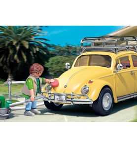 ¿Quién no conoce el exclusivo Volkswagen Beetle? Ahora el legendario coche familiar aparece en una nueva variante de color amarillo en una edición especial limitada. Al igual que el original, el PLAYMOBIL Beetle tiene, por supuesto, los típicos guardabarros curvados, espejos retrovisores redondos con aspecto cromado y un motor bóxer de 4 cilindros bajo el capó trasero. En el techo hay una baca con correas para asegurar el equipaje. Para el perfecto cuidado del coche se incluyen un cubo, una esponja y una manguera de agua. ¡Este modelo de Beetle es simplemente para enamorarse! El set de juego incluye una figura PLAYMOBIL, un Volkswagen Beetle con baca, cajón, manguera, esponja, cubo y muchos otros extras para los fans del Beetle. El coche tiene espacio para cuatro figuras.