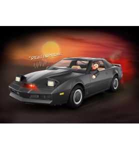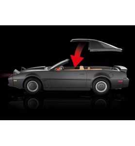 El coche fantástico es una trepidante aventura de un hombre que no existe, en un mundo lleno de peligros. Michael Knight, un joven solitario embarcado en una cruzada para salvar la causa de los inocentes, los indefensos, los débiles, dentro de un mundo de criminales que operan al margen de la ley". Un detective que se creía muerto, ahora con una nueva identidad. Le mueve la justicia y se propone acabar con el crimen con la ayuda de K.I.T.T., un coche futurista con inteligencia artificial y equipado con artilugios y armas de alta tecnología. Ahora K.I.T.T., el legendario coche de la serie de éxito de los 80 Knight Rider, llega a la flota de coches PLAYMOBIL. Al igual que su hermano mayor, PLAYMOBIL K.I.T.T. está equipado con toda una serie de funciones auténticas, como una simulación de impresora debajo del salpicadero para imprimir fotos de la ficha policial, una matrícula giratoria, una cuerda con gancho de agarre, faros emergentes y un techo desmontable. K.I.T.T. cuenta con sonidos y luces electrónicas que se accionan mediante una función táctil en el capó. El vehículo cita frases de la serie con la icónica voz original de K.I.T.T. Las citas específicas están asociadas a la función de encendido/apagado y las demás se reproducen de forma aleatoria. Al mismo tiempo, la icónica luz del escáner de la parte delantera del vehículo se enciende y la luz del salpicadero parpadea. Además del personaje, Michael Knight, el set de juego también incluye accesorios muy detallados, como el laboratorio informático de Bonnie Barstow y los muebles de la oficina de Devon Miles. Ahora es el momento de subir al coche y conducir hacia la siguiente misión.