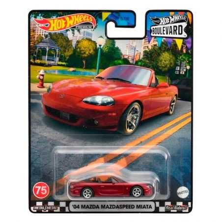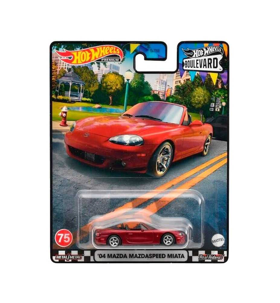 Hot Wheels Premium – Serie Boulevard 2023 – Mazda Mazdaspeed Miata MX-5 '04 en rojo. Número 75 en esta serie Real Riders altamente coleccionable. Maqueta de calidad del Mazda Mazdaspeed Miata MX-5 de Hot Wheels Boulevard serie '04 en Rojo en escala 1/64. Parte de la colección 2023 mix Q (segunda mezcla de conjuntos 2023).