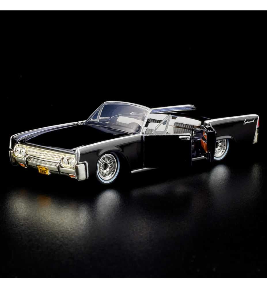 Nuestros diseñadores superaron todos los límites de la fundición a presión en este Lincoln Continental convertible de 1961. Nuestra versión del automóvil más emblemático de la flota de Lincoln ofrece un alto nivel de decoración y cuatro puertas que se abren y funcionan . La pintura clásica Spectraflame en negro auténtico , los detalles VUM en plateado y la arrogancia ilimitada le dan un gran apoyo al ícono de lowriding definitivo del estilo de los años 60. Suave y elegante , es un producto muy solicitado por los fanáticos de los autos clásicos en cualquier escala .