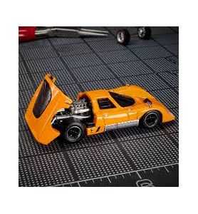 El legendario precursor del McLaren F1, el McLaren M6GT, fue un proyecto apasionante para su diseñador homónimo. Para rendir homenaje a uno de los bólidos con motor central más raros y rápidos de su época, lo hemos reproducido con todo lujo de detalles, desde su icónica pintura naranja McLaren hasta las ruedas Real Riders a medida y el capó trasero que se abre para revelar el exquisito motor pintado en plata que hay en su interior.