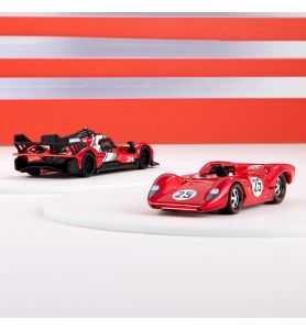 El fabricante italiano de deportivos de lujo, reconocido por su destreza en las más altas esferas de las carreras, regresa a Hot Wheels en escala 1:64. Empezamos con una pareja que celebra nuestra historia e innovación compartidas. Nuestro Ferrari 312 P rinde homenaje al primer Ferrari producido por Hot Wheels en 1969 para el año modelo 1970. Nuestro Ferrari 499P Modificata recrea el coche de carreras con tracción en las cuatro ruedas, exclusivo para circuito, que lanzó el programa exclusivo de Ferrari, Sport Prototipi Clienti, en 2024.