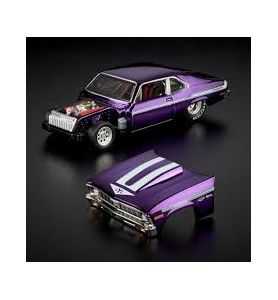 Tomamos un Chevy Nova SS de 1972 y lo convertimos en un monstruo de potencia modificado por Yenko. Luego, fuimos un paso más allá, transformándolo en un modelo Pro Street diseñado para emular los autos de carreras de la categoría Pro Stock, y le añadimos las llantas Real Riders Pro Strip, las primeras en usarse. No solo es ruidoso, rápido e imponente, sino que también es un coloso visual con pintura Spectraflame púrpura y gráficos Yenko sYc. ¡Impresionante!