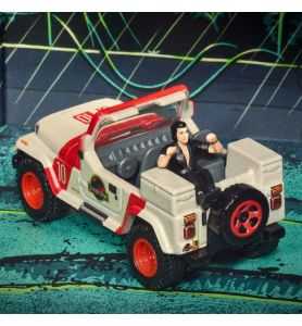 El juego incluye un vehículo y una figura del Dr. Ian Malcolm adjunta a la parte trasera.
