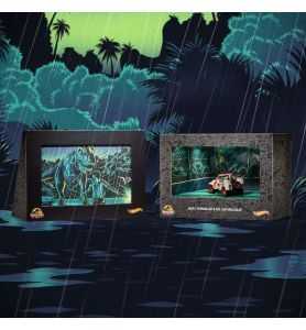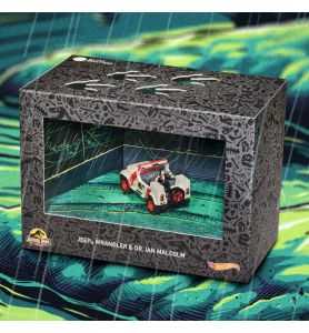 En honor al 30 aniversario de la exitosa película Jurassic Park de 1993, recreamos el intenso momento en el que el Dr. Ian Malcolm se encuentra en la parte trasera de un Jeep® Wrangler, que “debe ir más rápido”, perseguido por un T. rex hambriento. El juego incluye nuestro Jeep Wrangler Sahara '93 modificado con ruedas Real Riders quince52 y la figura del Dr. Malcolm adjunta a la parte trasera. El empaque de la ventana presenta carteles artísticos que representan la escena y agregará un elemento de terror a su colección.