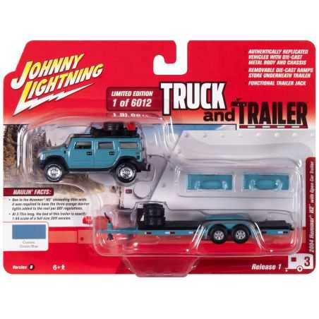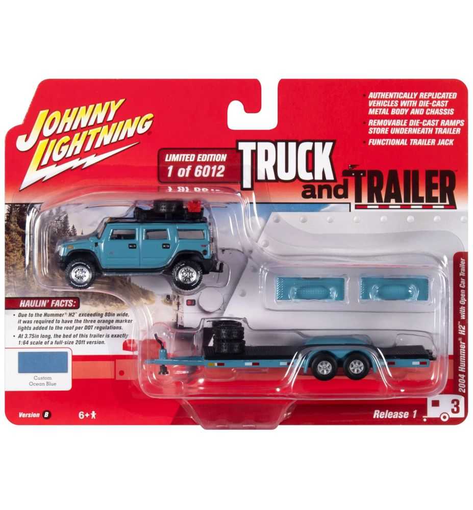 Johnny Lightning 2004 Hummer H2 with Open Trailer Azul Océano 1/64