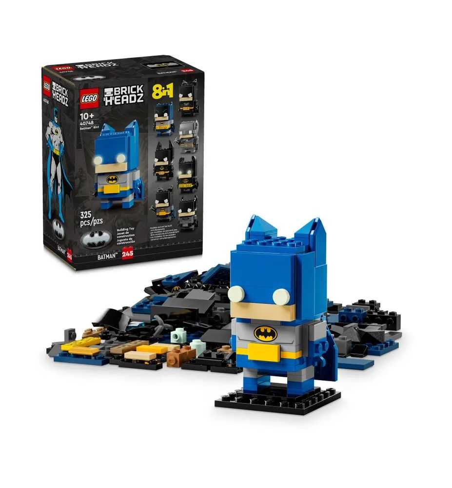 Con el set LEGO® BrickHeadz™ Batman™ Figura de Batman 8en1 (40748), los niños pueden construir su modelo de Batman en cualquiera de estos 8 estilos icónicos: (1) Batman de la Edad de Bronce, (2) la serie para televisión clásica, (3) Batman (1989), (4) Batman: La serie animada, (5) la trilogía El caballero oscuro, (6) Batman v Superman, (7) BATMAN: LA LEGO PELÍCULA con ojos que brillan en la oscuridad, y (8) The Batman. Este set BrickHeadz 8en1 es un fantástico regalo para niños y niñas a partir de 10 años para construir, jugar y exponer. Los modelos personalizables de Batman tienen 325 piezas y una altura aproximada de 9 cm, con ligeras variaciones.