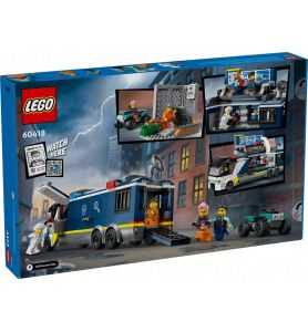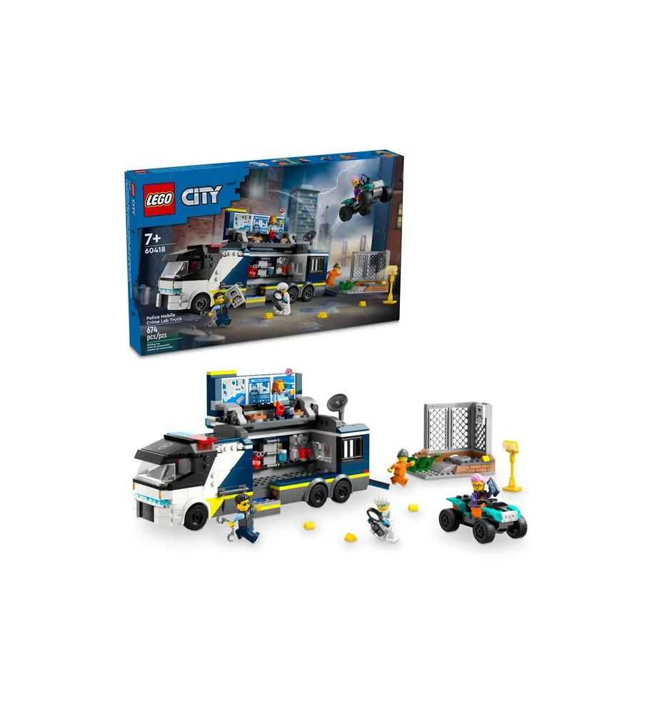El seguimiento de las pistas dejadas por los ladrones es una tarea que corresponde a los agentes del Laboratorio de Criminología Móvil de la Policía LEGO® City (60418). Este set está diseñado para niños a partir de 7 años e incluye un camión que se abre para revelar un laboratorio de 2 niveles con estaciones de trabajo, mapa, pantallas de CCTV, microscopio, máquina de café y celda. También se incluye una escena forense y una moto quad, así como las minifiguras de 2 policías, 1 científico y 2 ladrones.