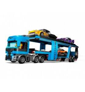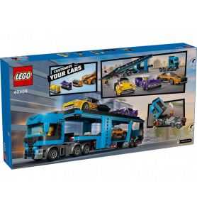 Sorprende a tu entusiasta de los coches de juguete con el emocionante set de construcción multivehículo LEGO® City Camión de Transporte con Deportivos (60408) para niños y niñas mayores de 7 años. Podrá disfrutar inclinando la cabina del conductor para acceder al motor, enganchando el remolque y bajando las rampas de las plataformas superior e inferior para cargar el coche de cola baja estilo años 50, el potente deportivo de los años 70 y el supercoche eléctrico moderno. Este increíble set también incluye 4 minifiguras.