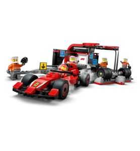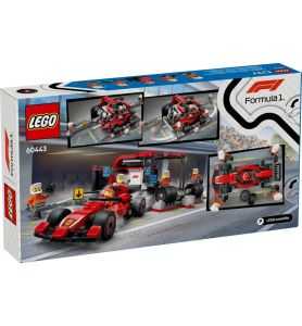¿Qué incluye la caja? Todo lo que los niños necesitan para construir una parada en boxes de F1® y un coche Ferrari de juguete, además de minifiguras de un piloto y 4 mecánicos.
