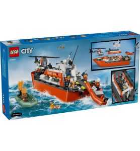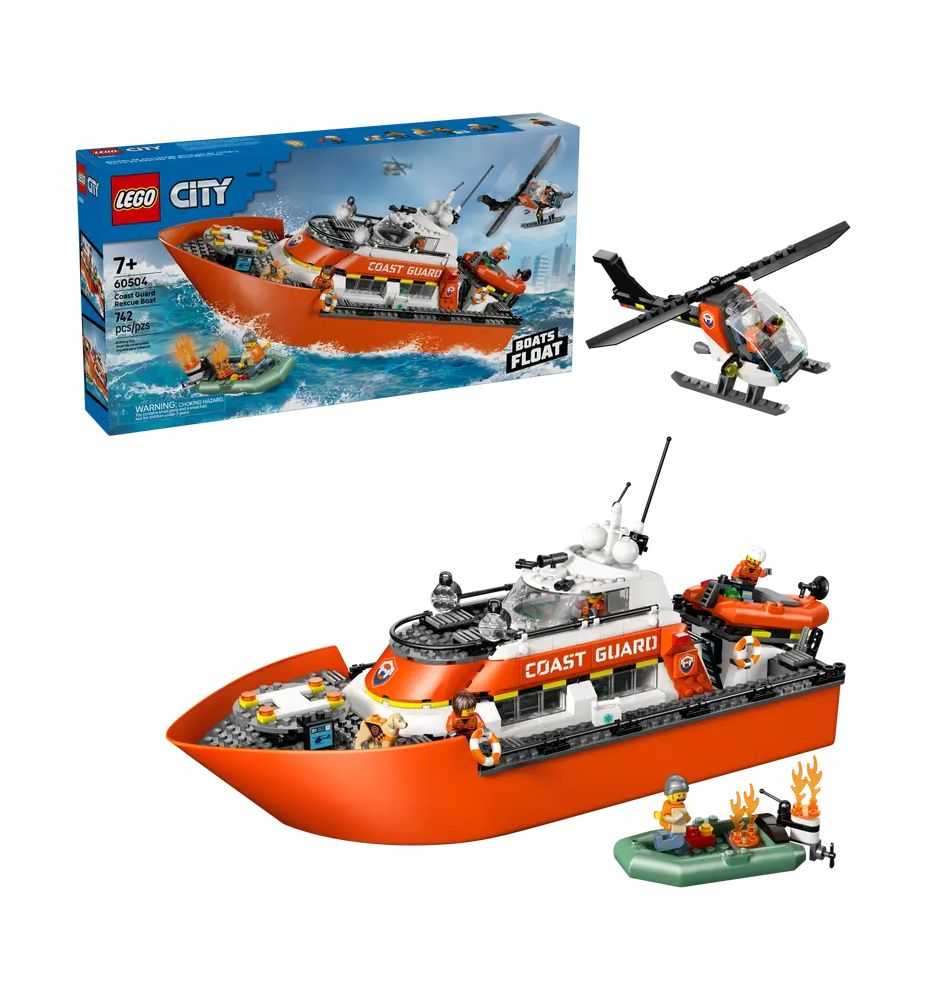 CONTENIDO DEL SET: Los niños encontrarán todo lo necesario para construir un barco patrulla guardacostas LEGO®, un helicóptero de rescate y 2 lanchas flotantes, además de 5 minifiguras y una figura de un perro.