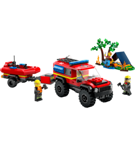 ¿Qué contiene este set de construcción LEGO®? Todo lo necesario para construir un camión de bomberos 4x4, un remolque, un barco de rescate, una tienda de campaña y una escena de acampada con fogata, con minifiguras de un excursionista y 2 bomberos