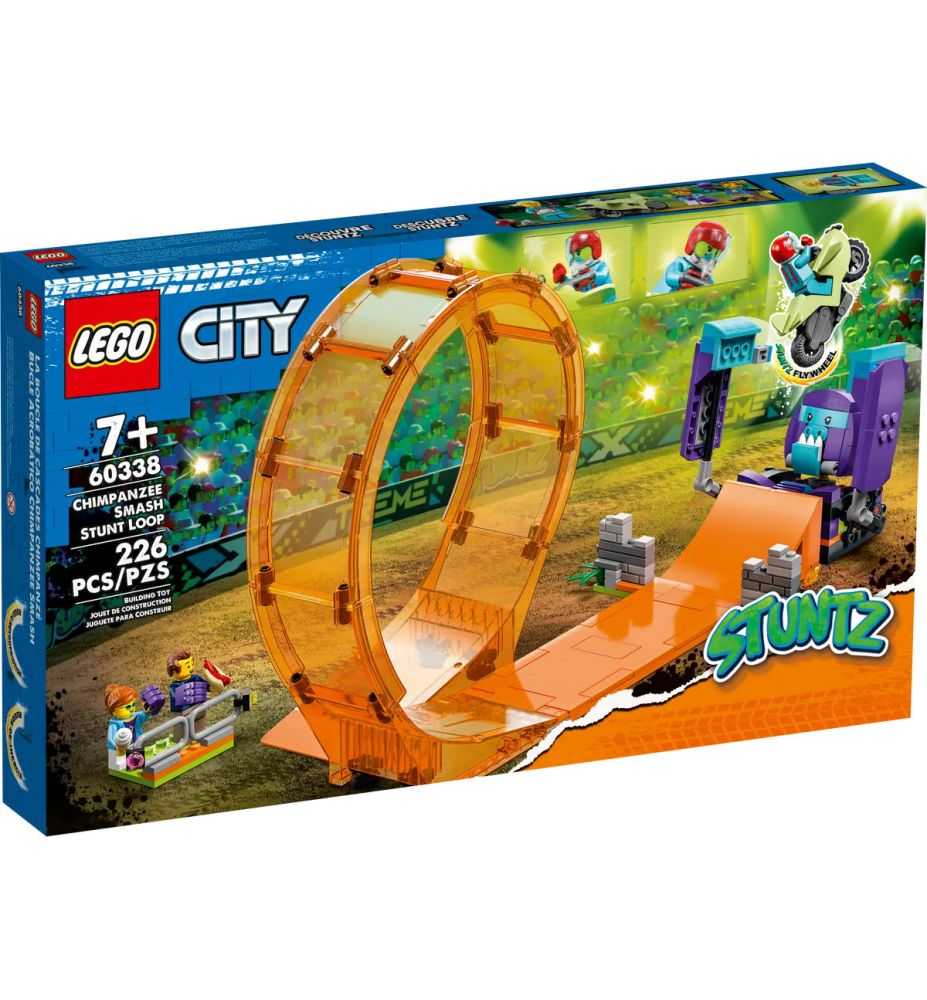 El set de construcción de juguetes LEGO® City Rizo Acrobático: Chimpancé Devastador (60338) incluye una estructura mecánica con forma de chimpancé para espectáculos acrobáticos, así como un rizo, una rampa y una moto acrobática con rueda de inercia. Bastará con que agregues las 3 minifiguras y podrás organizar apasionantes exhibiciones y torneos.