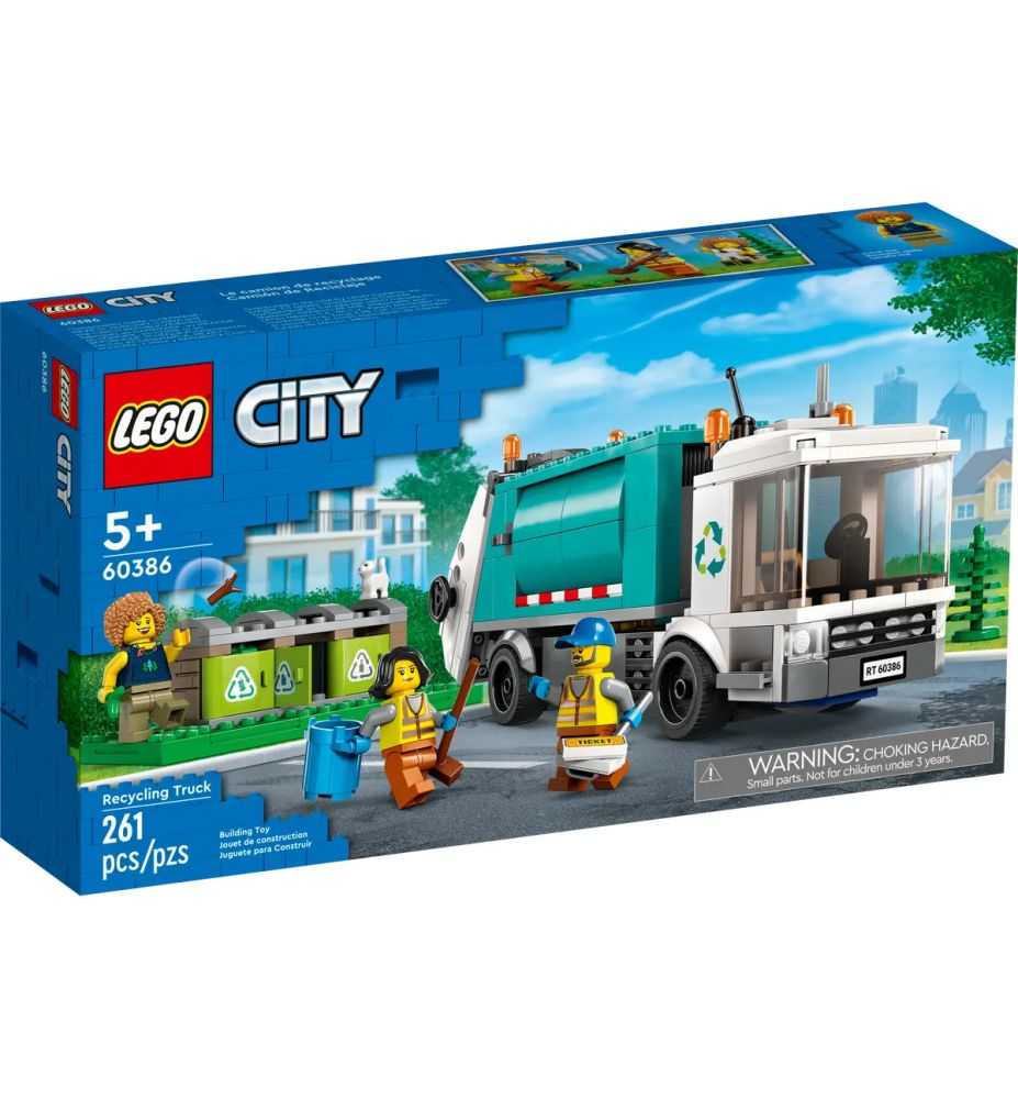 - Vehículo de reciclaje de juguete: Cuidar el medioambiente es divertido con el set LEGO® City Camión de Reciclaje (60386), que incluye también un punto limpio