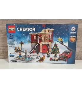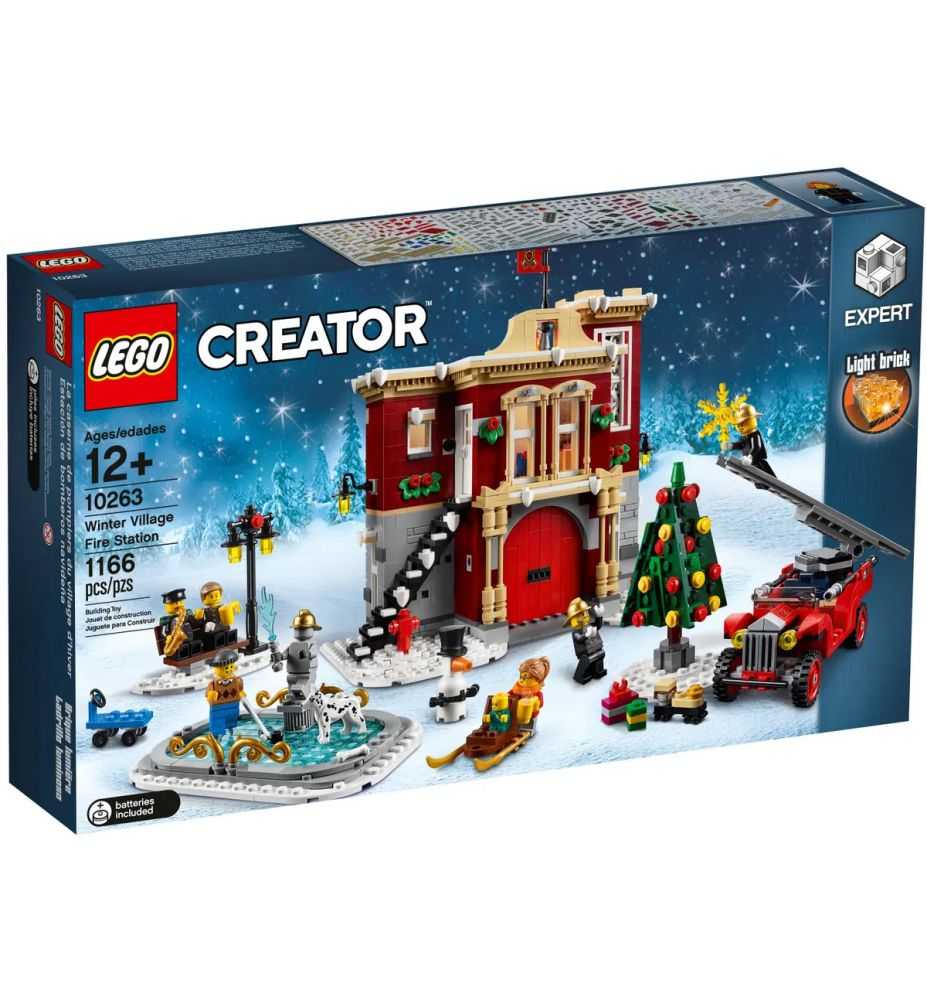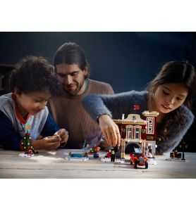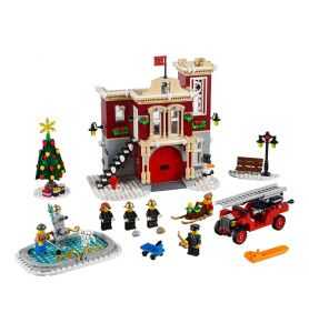 El Parque de Bomberos Navideño, de 2 plantas, cuenta con una amplia variedad de detalles para construir e incluye una detallada fachada con columnas decorativas, ventanas ornamentales, grandes puertas rojas en el garaje y adornos de acebo, así como una pista de patinaje sobre hielo con una estatua de un bombero, un árbol de Navidad decorado con una estrella transparente, un trineo, un banco, una farola y un ladrillo LEGO® con luz.