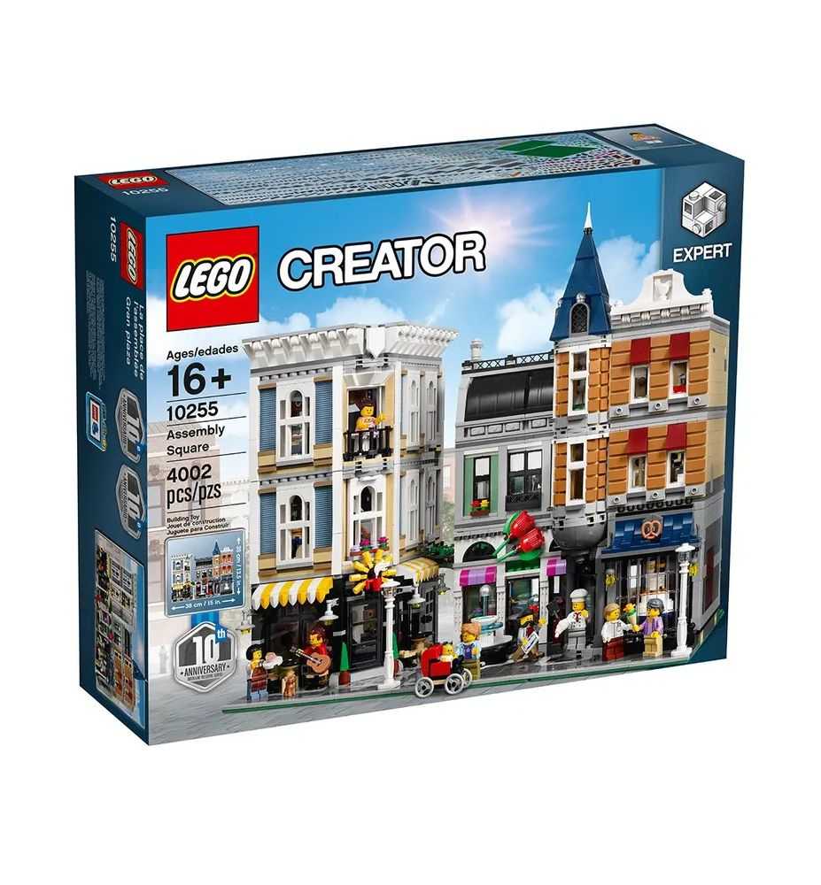 ¡Visita el asombroso edificio Gran plaza, diseñado para celebrar el décimo aniversario de la serie LEGO® Modular Buildings! Cuenta con numerosos, insuperables y elaborados detalles, además de divertidas sorpresas ocultas. Las secciones del edificio, fáciles de desmontar, permiten acceder al detallado interior, compuesto por una planta baja con una pastelería, una floristería y una cafetería, una planta central con una tienda de música, un estudio fotográfico y una consulta dental, y una planta alta con un estudio de danza y un apartamento con acceso a la azotea, equipada con una barbacoa. El exterior del edificio cuenta con una detallada acera con mobiliario exterior de cafetería, una fuente y farolas, una elaborada fachada con puertas y ventanas cuidadosamente detalladas, tres rótulos comerciales para construir, una torre acabada en punta y perfiles decorativos. Incluye ocho minifiguras y una figura de un bebé.