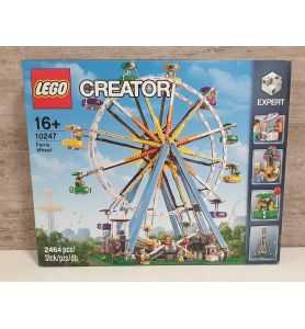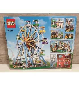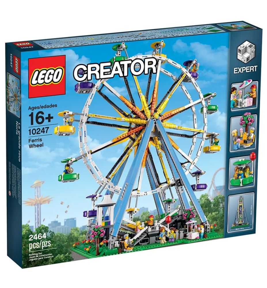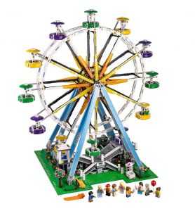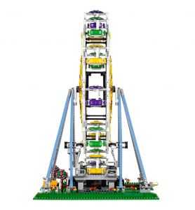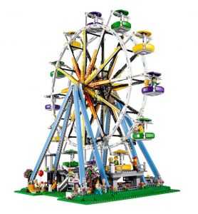 Construye la majestuosa Noria, ¡la estrella de la feria! Este precioso modelo LEGO® Creator Expert posee una llamativa elegancia que evoca sensaciones de nostalgia, romance y aventura. La feria ha llegado a la ciudad y el vendedor de helados está muy ocupado atendiendo a los entusiasmados clientes que esperan su turno para montar por primera vez en la mágica Noria, que se eleva por encima del resto de atracciones. Gira lentamente la manivela y verás cómo las coloridas góndolas de la Noria descienden con elegancia hasta la posición de embarque de pasajeros. ¡Tira de la palanca para subir la plataforma de embarque, abre la puerta de la góndola y ayuda a entrar a los pasajeros! Diviértete construyendo este elegante y mágico modelo cuyo encanto cautivará tu imaginación. También puedes motorizar la Noria con el Motor M (8883) y la Batería AAA (88000) de LEGO Power Functions (elementos no incluidos). Incluye 10 minifiguras: un operador de la Noria, un vendedor de helados, 4 niños y 4 adultos.