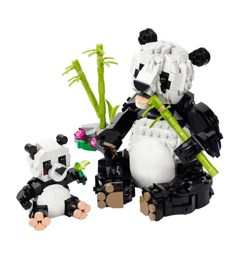 Los niños a partir de 8 años pueden disfrutar del cariño y los divertidos juegos de 3 familias de animales con el set Fauna Salvaje: Familia de Pandas (31165). Este set incluye una pareja de pandas, compuesta por un adulto (con boca, cabeza, cuello y garras móviles) y su cría, junto a un brote de bambú como tentempié.