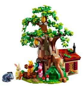 La maqueta viene acompañada de minifiguras de los personajes Disney Winnie the Pooh, Piglet, Tigger y Conejo, y de una figura LEGO de Ígor. Cada uno de los amigos trae un accesorio, como el globo rojo construible de Winnie the Pooh, para recrear las clásicas escenas.
