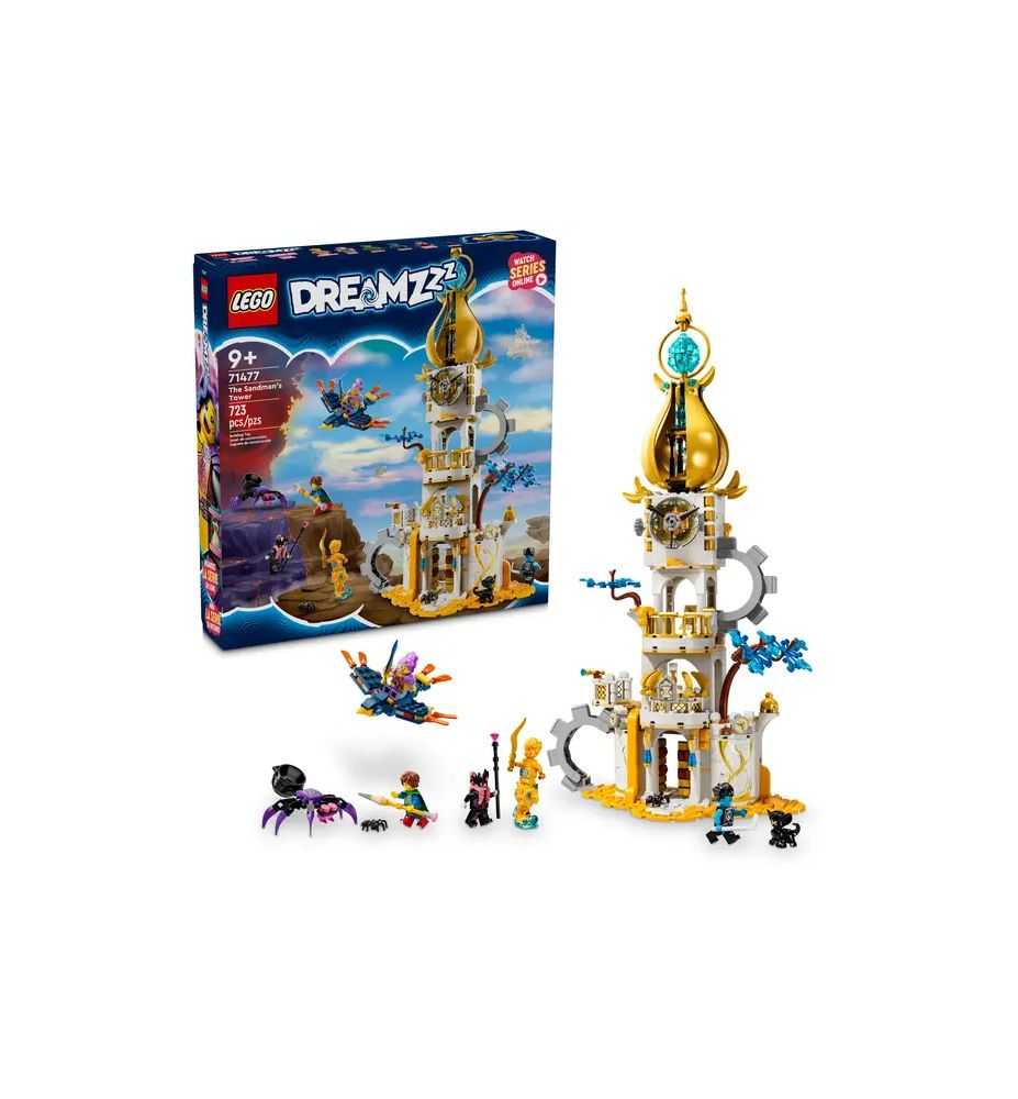 A los niños a partir de 9 años les encantará este castillo LEGO® DREAMZzz™ (71477), que les permite explorar la Torre del Sandman. Inspirado en la emocionante serie de televisión, este set de construcción invita a los pequeños a unirse a las figuras de los héroes para proteger el hogar mágico del Sandman de la malvada Bruja Jamás y su cómplice Sneak. Este juguete estimula la creatividad de los niños al ofrecerles 2 opciones de construcción: pueden transformarlo en una imponente fortaleza o en una elegante torre. Como fortaleza, incluye un Reloj de Arena con cañón, y como torre, la parte superior gira. Ambas versiones cuentan con fantásticos accesorios (un soporte para armas, otro para pociones y un libro mágico) e incluyen figuras de animales fantásticos (una araña y un ave de juguete articuladas). Izzie, Mateo, Logan, el Sandman y la Bruja Jamás, junto con la figura de Sneak, darán vida al castillo o a la torre de ensueño que los niños imaginen. Castillo de juguete para niños: Los pequeños de 9 años o más podrán dejar volar su imaginación con el set LEGO® DREAMZzz™ Torre del Sandman.