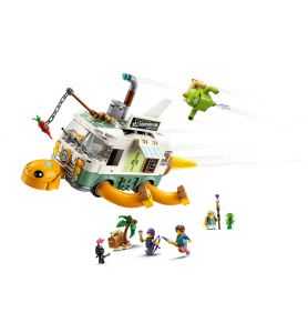 En el diseño básico, la Furgoneta-Tortuga de la Sra. Castillo de juguete cuenta con ruedas móviles y techo desmontable. Los niños pasarán horas personalizándola de 2 formas distintas, guiados por las instrucciones con historia. En el modo fiesta, la Furgoneta-Tortuga se puede complementar con un árbol móvil, un cactus giratorio y un cofre del tesoro que se abre. En el modo submarino volador, llevaría un cohete y un periscopio móvil, y una versión voladora de Gato-Cactus viajaría a su lado.