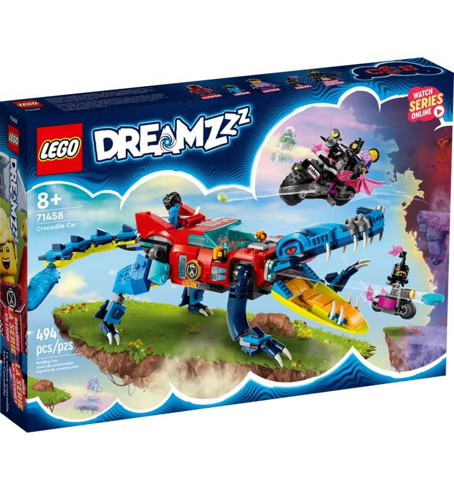 Los peques a partir de 8 años viajarán a gran velocidad hacia el Mundo Sueños con el set de juguetes LEGO® DREAMZzz™ Coche-Cocodrilo (71458). Basado en la serie para televisión, el set permite a los niños crear un coche alucinante que les ayudará a salvar a Jayden, capturado por el temible Cazador Nocturno. 1 set, 2 opciones El juego incluye 2 opciones de construcción e instrucciones con historia para que los peques elijan su propia aventura y jueguen el doble. Pueden construir el Coche-Cocodrilo para ahuyentar a las pesadillas o un rapidísimo todoterreno y un minibarco para perseguirlas. Como cocodrilo, el vehículo cuenta con brazos y patas articulados; también lleva un lanzador de discos oculto en la rejilla delantera para dispararlos por la boca del cocodrilo. Como camión, tiene ruedas rodantes y techo desmontable para sentar a una minifigura dentro. Fantásticas minifiguras El set contiene minifiguras de Cooper, Jayden y el Cazador Nocturno (con su moto y un malvado ayudante).