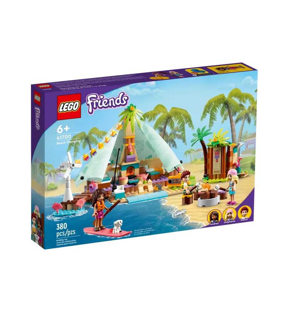 El juego LEGO® Friends Glamping en la Playa (41700) es una excelente opción. Este set incluye todo lo necesario para que tu hija pueda recrear su día ideal en la playa: