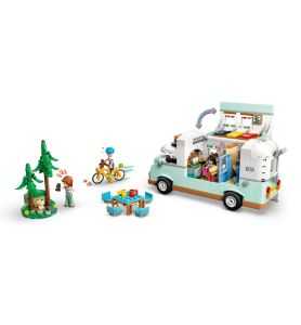 La caravana de este set está equipada con todo lo necesario para que los jóvenes exploradores creen sus propias narrativas. Los amigos pueden sentarse en el interior y conducir hacia el lugar ideal en el bosque. El vehículo se abre y cuenta con una cocina y un baño. ¡Las risas están garantizadas cuando los pequeños vean cómo todo desaparece al tirar de la cadena! La escalera conduce a las camas de los 3 minipersonajes. También incluye una bicicleta, una mesa de picnic con sillas, una ducha exterior, una brújula, una llave inglesa y unos prismáticos.