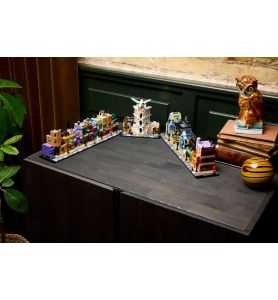 Este modelo es una pieza decorativa impresionante. Puedes exhibirlo como una calle con dos aceras o como una larga fila de edificios, o dividirlo en 5 secciones para observarlo más de cerca. Incluye 12 microfiguras exclusivas de LEGO Harry Potter y el Autobús Noctámbulo para revivir escenas memorables.