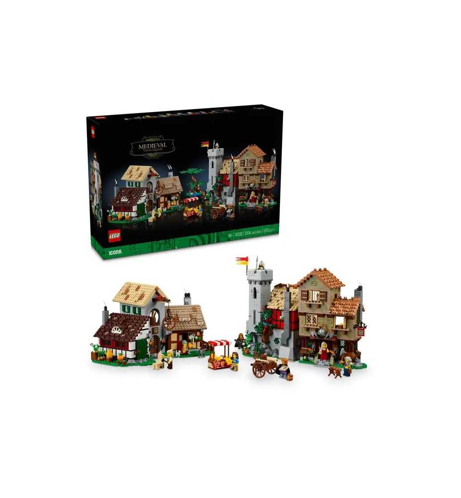 Set de construcción de una aldea medieval para adultos: La Plaza Mayor Medieval LEGO® Icons recrea el set Medieval Market Village de 2009 con la aldea de Felsa, que presenta nuevas historias y edificaciones de la época.