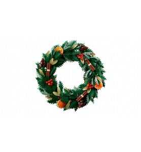 La Corona cuenta con cuatro colgadores y puede exponerse como guirnalda. Elige el color de las bayas o crea tu propia combinación. Coloca las rodajas de naranja, la canela y las piñas, y organiza las hojas hasta lograr la composición perfecta.