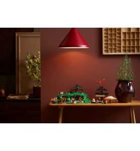 Recrea el hogar hobbit de Bilbo, que incluye una puerta redonda y un interior meticulosamente amueblado que cuenta con una entrada, estudio y salón. Dale vida a las escenas mediante funciones interactivas: transforma un sobre ardiente en el Anillo Único o haz desaparecer a Bilbo al girar una rueda. Con una abundancia de elementos, desde el carro de Gandalf hasta el dragón de fuegos artificiales y el árbol de la fiesta, este set se convierte en una encantadora pieza de exhibición.