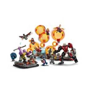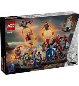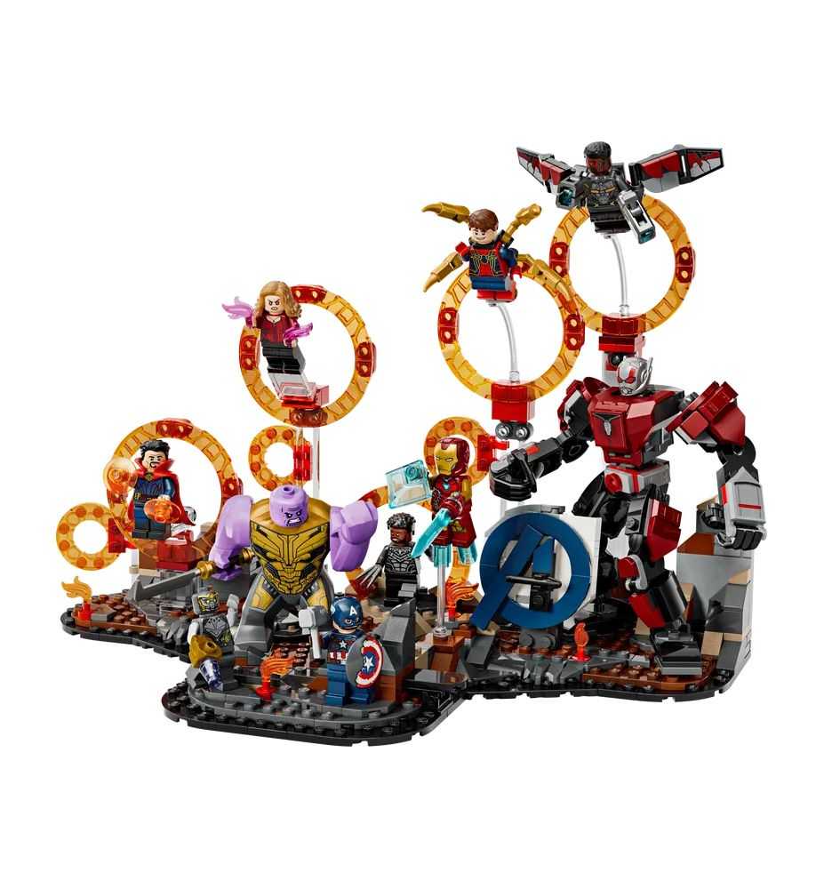 Basado en el emocionante enfrentamiento de la película Marvel Studios Vengadores: Endgame, este set incluye anillos dobles para crear portales interdimensionales y 9 minifiguras: el Capitán América (con escudo), Iron Man MK85 (con espada y escudo), un Chitauri (con cañón en el brazo), Ant-Man, la Bruja Escarlata (con elementos que simulan llamas), Doctor Strange, Iron Spider (con 4 “piernas” movibles en la espalda), Black Panther y Falcon (con 2 cañones). Además, cuenta con una figura grande de Thanos, un meca articulado de Ant-Man, 2 mecanismos de explosión de rocas y una versatilidad infinita para reconfigurarse, asegurando acción épica de superhéroes. El set incluye un total de 621 piezas.