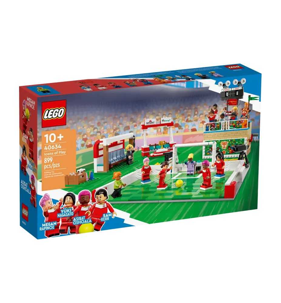 Inspira a tu aficionado o aficionada al fútbol de 12 años o más con el set de juguetes construibles LEGO® Iconos de Juego (40634). Incluye la mitad de un terreno de juego con portería y monitor del VAR, gradas con un marcador, un escenario de ceremonias y mucho más. Algunas de las 15 minifiguras representan a famosas futbolistas, como la habilidosa y creativa Megan Rapinoe, la polifacética Yūki Nagasato, la extraordinaria delantera Sam Kerr y la superestrella mundial Asisat Oshoala. Una divertida idea de regalo para construir, jugar y exponer que entusiasmará a cualquier amante del fútbol.