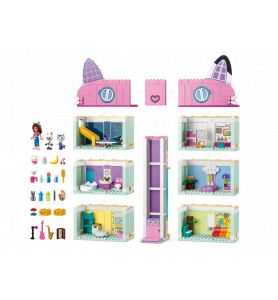 La Casa de Muñecas de Gabby tiene 8 habitaciones conectadas por un ascensor, cada una llena de actividades. Los niños podrán hornear en la cocina, deslizarse por el tobogán en la sala de juegos, ser creativos en la sala de manualidades, tocar el piano en la sala de música, acicalarse en el baño, echarse la siesta en el dormitorio o dar una fiesta en la azotea con una pista de baile. Además, podrán disfrutar con 4 populares personajes: Gabby, Pandy Patitas, Muffin y Siregata.