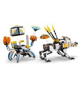 Juguete de aventuras LEGO®: Los niños ayudarán a Aloy y Varl en su lucha contra las máquinas articuladas, Cangrejo y Dientes Serrados, intercambiando elementos en sus armas para activar ataques de fuego, descarga o hielo.