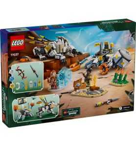LEGO® Horizon Adventures™ Aloy y Varl contra Cangrejo y Dientes Serrados (77037) es un set de fantasía coleccionable diseñado para niños a partir de 9 años. Inspirado en el videojuego LEGO Horizon Adventures, este conjunto incluye 2 minifiguras: Aloy y su leal compañero Varl. Aloy empuña un arco y Varl una lanza, cada una con mejoras que permiten activar diferentes métodos de ataque como fuego, hielo o descargas eléctricas, tal como en el videojuego. También se incluyen 2 criaturas robóticas que se pueden construir. Cangrejo cuenta con patas y brazos articulados, pinzas móviles, una cápsula de carga desmontable y un escudo de energía. Dientes Serrados tiene una mandíbula que se abre, un torso giratorio y partes articuladas en el cuello, cabeza y patas. Para fomentar la creatividad, se añaden elementos como juncos, una fogata, un cofre del tesoro y más. No olvides explorar la app LEGO Builder para añadir una dimensión digital a la diversión.