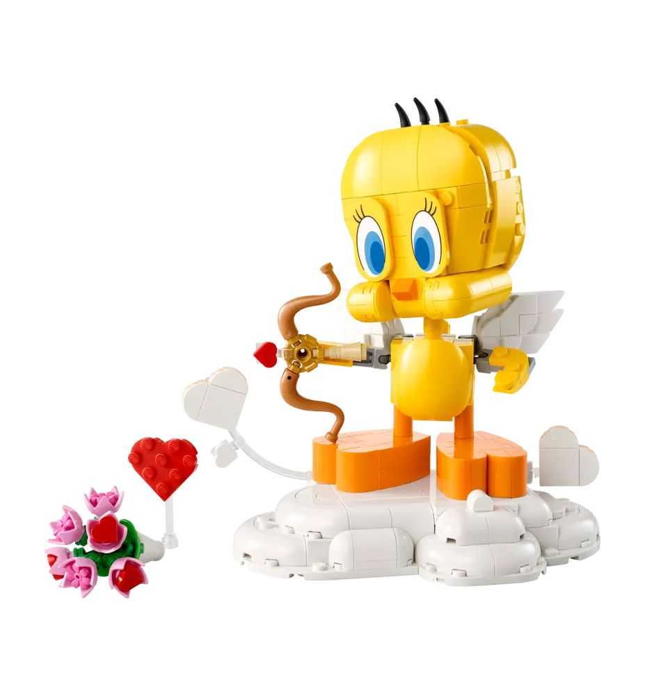 Puedes caracterizar a Piolín como Cupido, colocándolo en una nube con elementos que representan un arco y una flecha. O bien, puedes hacer que sostenga un ramo de flores y ponerle un corazón sobre la cabeza para resaltar su lado romántico. La figura incluye numerosos detalles articulados, como la cabeza, las alas, la cola y las patitas de Piolín. Con sus coloridos accesorios, este set LEGO te permite crear una pieza decorativa que seguramente hará latir más fuerte los corazones.