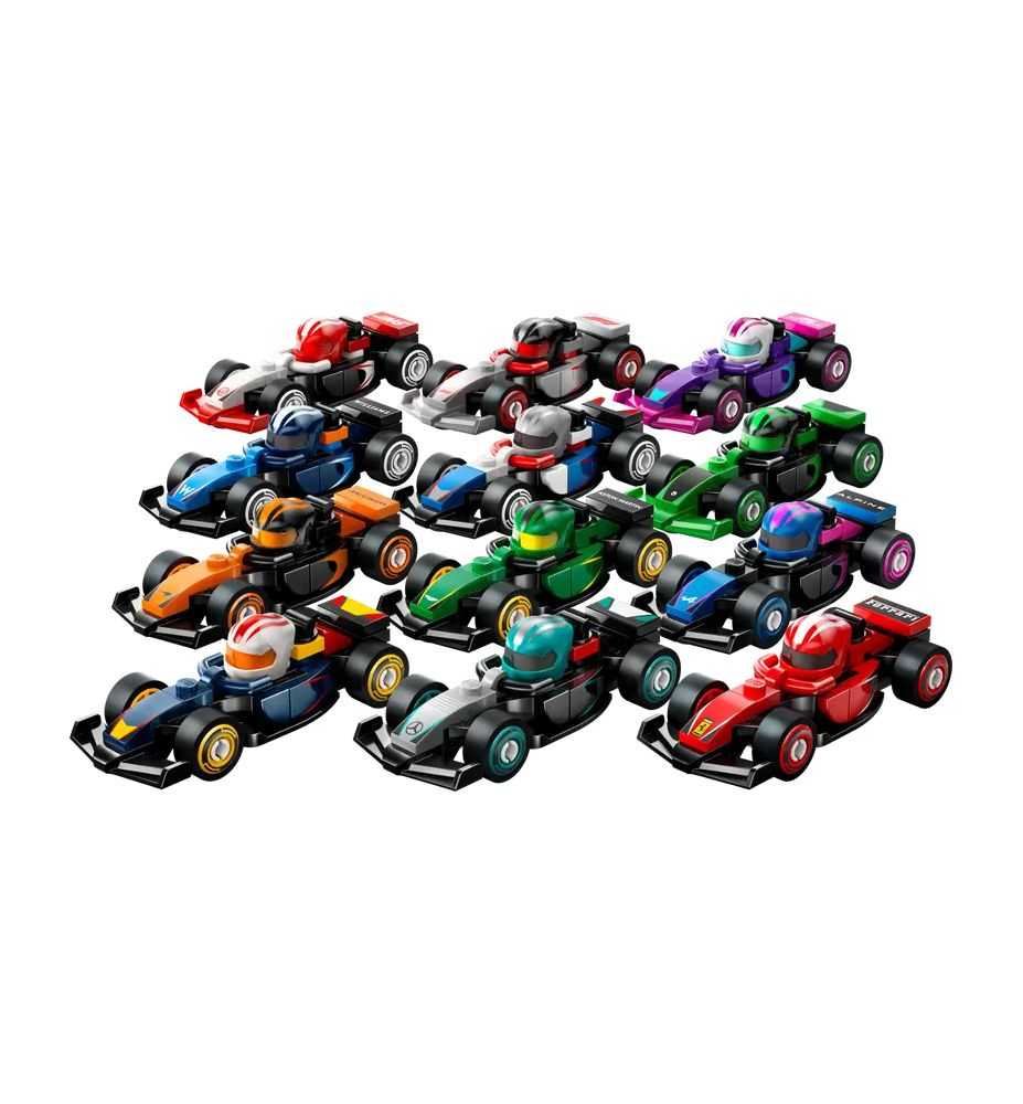 Hay 1 Coche de F1 Coleccionable LEGO sorpresa en cada kit de vehículo, y un total de 12 para coleccionar: un coche de F1, un coche de F1 ACADEMY™ y 10 coches de otros tantos equipos de Formula 1 (RB20, Mercedes-AMG, Ferrari, McLaren, Aston Martin, Alpine, Williams, VCARB, Sauber y Haas).