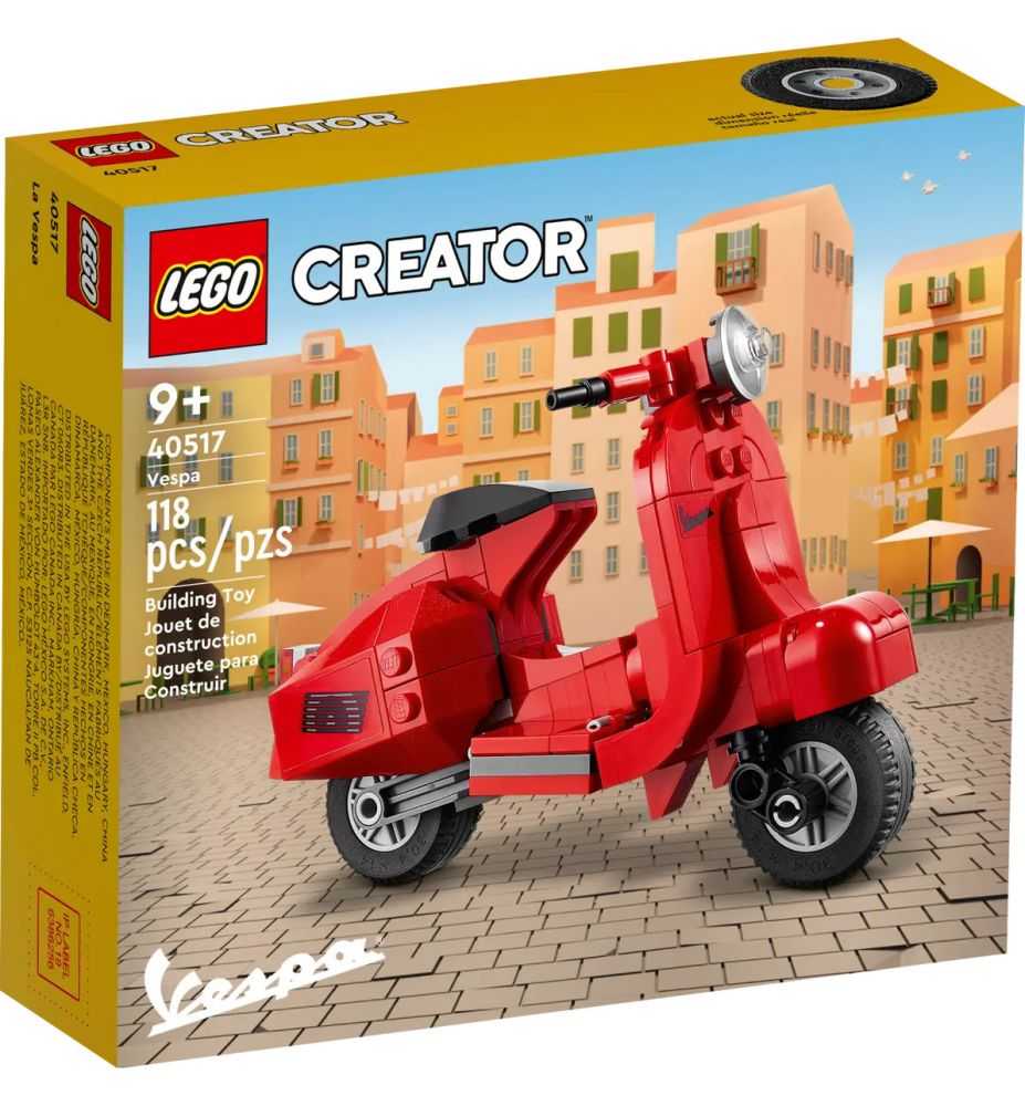 A los peques les encantará imaginar que recorren las calles dándole gas a esta fabulosa maqueta del emblemático escúter Vespa (40517). Incluye un montón de esos detalles característicos que hacen inconfundible a una Vespa, como el manillar o el asiento, y se ha diseñado en un atrevido color rojo. Es un regalo sensacional para fans de LEGO® a partir de 9 años con pasión por los vehículos originales.
