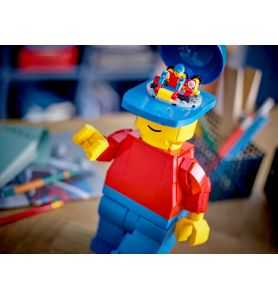 Cautiva a tu entusiasta de LEGO® de 10 años o más con la Minifigura LEGO Gigante (40649) construible. Esta minifigura articulada es idéntica a la situada en la entrada del complejo LEGO Campus en Billund y cuenta con cabeza, brazos, piernas y manos móviles. Además, lleva una gorra que esconde debajo una minifigura de tamaño estándar para divertirse jugando a interpretar. Esta figura para construir gigante, fantástica como pieza de exposición para cualquier hogar u oficina, es un valioso regalo para fans de las minifiguras o la construcción con LEGO.