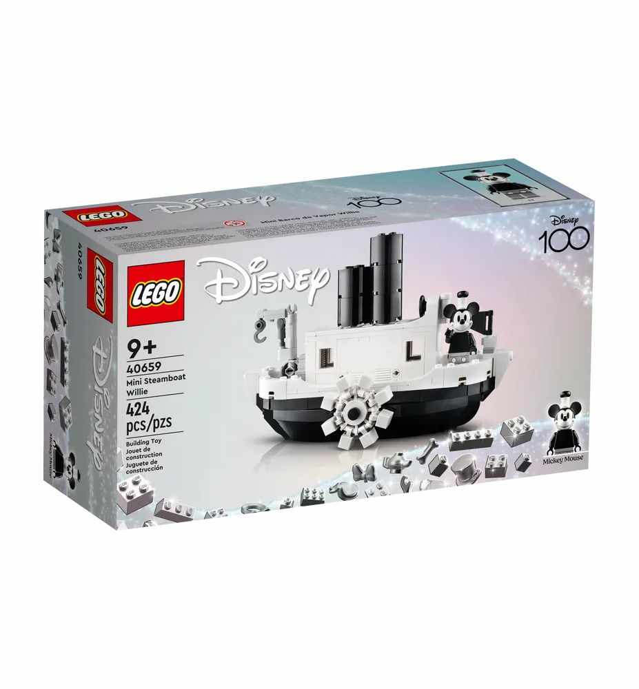 Cautiva a tu fan de LEGO® ǀ Disney a partir de 9 años y celebra el 100 aniversario de Disney con el nostálgico set construible Mini Botero Willie (40659). El barco y la minifigura de Disney Mickey Mouse reproducen las características de las versiones originales con la máxima fidelidad posible usando ladrillos blancos y negros. La rueda de paletas del barco de vapor gira y mueve las chimeneas hacia arriba y hacia abajo. La maqueta y la minifigura inspirarán divertidos juegos de interpretación o quedarán fenomenal expuestas en cualquier hogar u oficina.