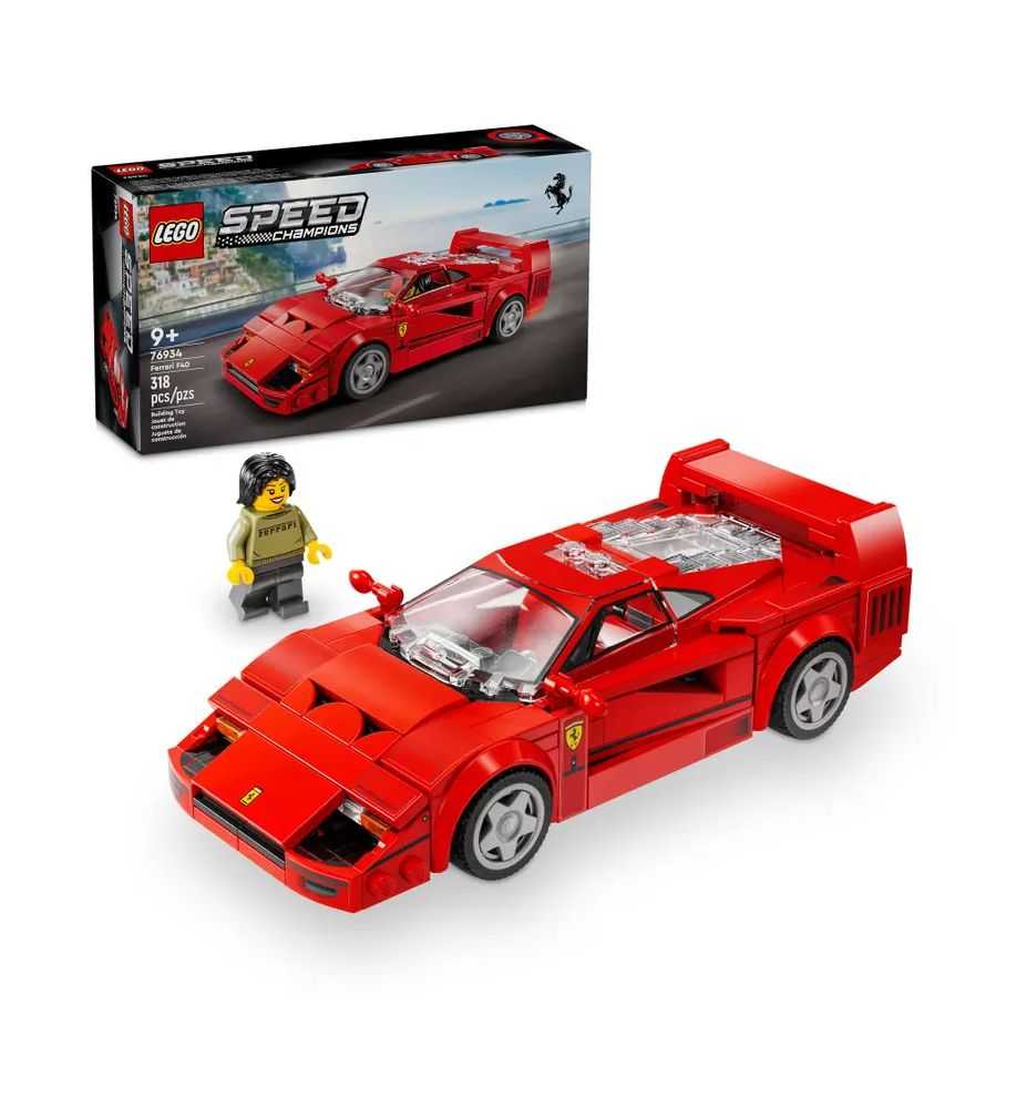 El set LEGO® Speed Champions Ferrari F40 (76934) es perfecto para niños y niñas a partir de 9 años que quieran construir, exhibir y coleccionar un increíble coche de juguete. Este modelo conmemora el 40 aniversario de Ferrari y presenta numerosos detalles de diseño de la versión real del F40, el último modelo aprobado por Enzo Ferrari. El coche de juguete incluye características icónicas como el alerón trasero, morro, tubos de escape, llantas, entradas de aire y un detallado interior con asientos rojos y volante. Además, viene con una minifigura de una piloto de Ferrari. Los sets LEGO Speed Champions ofrecen la oportunidad de construir réplicas de famosos vehículos, y con la app LEGO Builder, los niños pueden disfrutar de una aventura intuitiva en la construcción. Una vez construido, este modelo del Ferrari F40 es perfecto para exhibirlo con orgullo en un estante o mesita de noche. Es un regalo ideal que proporciona una divertida experiencia de construcción y juego.