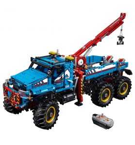 Lleva a cabo arriesgadas operaciones de rescate de vehículos con el Camión todoterreno 6x6 por control remoto. Este auténtico modelo LEGO® Technic “2 en 1” cuenta con una combinación de colores en azul, rojo, amarillo y negro, y está equipado con grandes y gruesos neumáticos, barra protectora con cadena y gancho, faros móviles y una detallada cabina para el conductor con puertas que se abren. Las funciones por control remoto permiten avanzar y retroceder, girar las ruedas delanteras, extender los estabilizadores y controlar el brazo de grúa y el gancho. ¡Reconstruye el modelo para crear un Vehículo explorador de investigación y disfruta de una doble experiencia de construcción y juego!