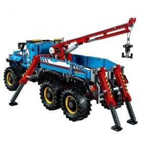 - El Camión grúa todoterreno 6x6 mide más de 51 cm de altura, 63 cm de longitud y 37 cm de ancho con el brazo de grúa elevado y los estabilizadores extendidos, y 26 cm de altura y 20 cm de ancho con el brazo de grúa bajado y los estabilizadores plegados.