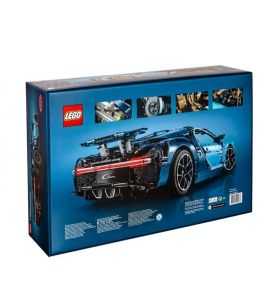 ¡Explora un hito de la ingeniería con el set de construcción avanzado LEGO® Technic™ Bugatti Chiron (42083)! Este exclusivo modelo, desarrollado en estrecha colaboración con Bugatti Automobiles S.A.S para capturar la esencia del supercoche deportivo por antonomasia, cuenta con una reluciente y aerodinámica carrocería, llantas de radios decoradas con el logotipo, neumáticos de bajo perfil y detallados discos de freno. La cabina accesible está equipada con caja de cambios Technic de 8 velocidades con levas móviles al volante, el cual va rematado con el emblema de Bugatti. Inserta la llave de máxima velocidad y podrás hacer que el alerón trasero activo pase de la posición de circulación a la de máxima velocidad. El compartimento trasero te permite contemplar el detallado motor W16 con pistones móviles, mientras que bajo el capó descubrirás un número de serie exclusivo del modelo y un compartimento de almacenamiento, muy compacto, con una elegante bolsa de viaje Bugatti. Este modelo a escala 1:8 incorpora la clásica combinación azul a dos tonos de Bugatti que refleja el color característico de la marca y un juego de adhesivos para aportar un mayor nivel de detalle. El set se entrega en una caja de lujo e incluye un folleto en color para coleccionistas con instrucciones de construcción detalladas.