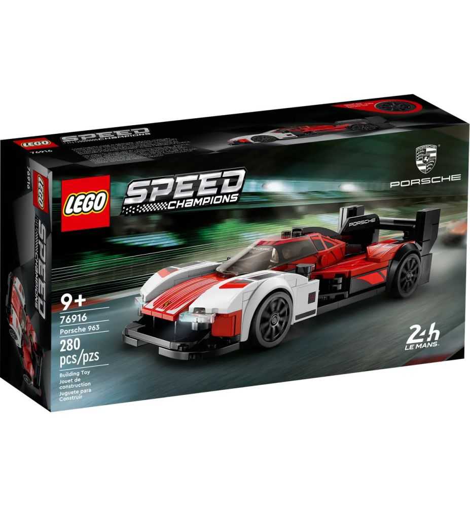 El set de construcción LEGO® Speed Champions Porsche 963 (76916) recrea con fidelidad el sensacional diseño del modelo original. A los niños y niñas de 9 años o más y los coleccionistas de réplicas de coches de todas las edades les entusiasmará construir, exponer e interpretar emocionantes carreras con este fabuloso juguete.