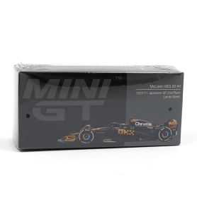 Mini GT 2023 McLaren MCL60 Lando Norris 2nd Place Japanese GP Naranja/Negro 1/64