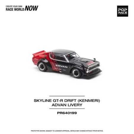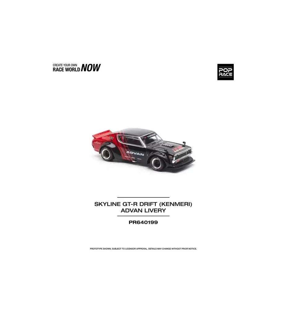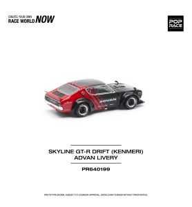 Pop Race Nissan Skyline GT-R Drift (Kenmeri) Advan Livery, Rojo/Blanco 1/64